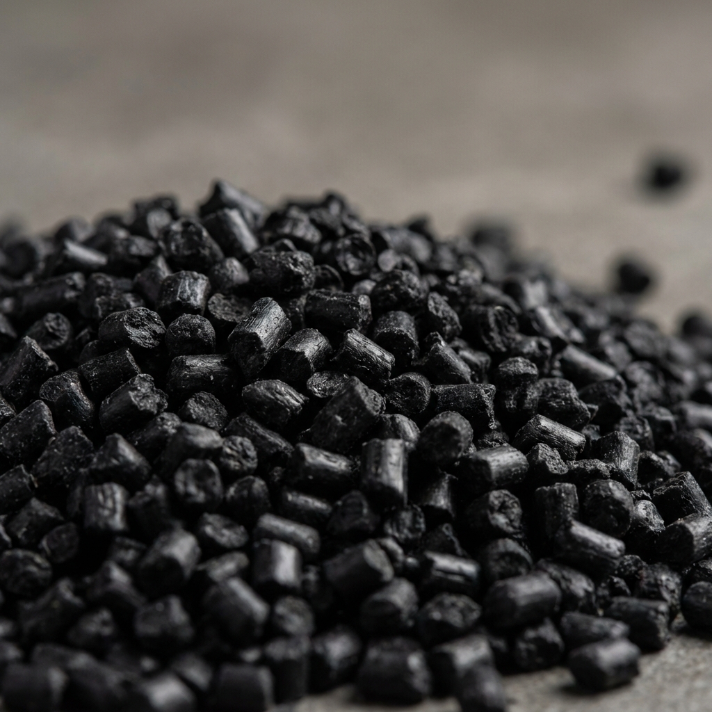 Otomotiv komponentleri ve endüstriyel aksamlar için optimize edilmiş, yüksek darbe dayanımlı siyah enjeksiyonluk granül.